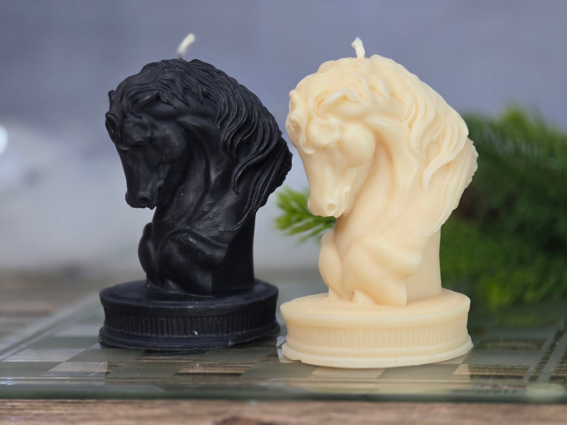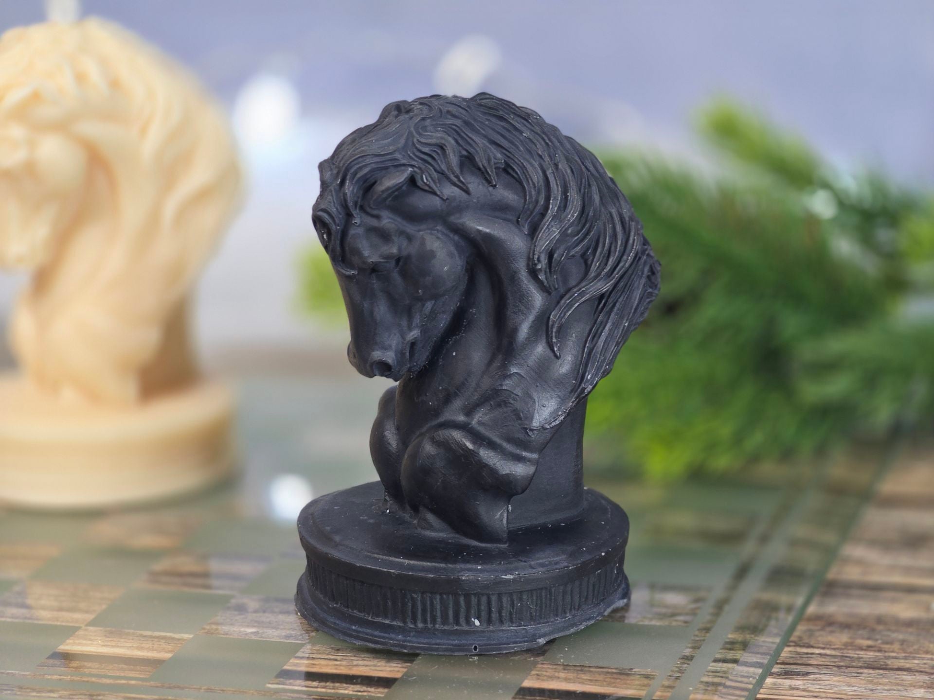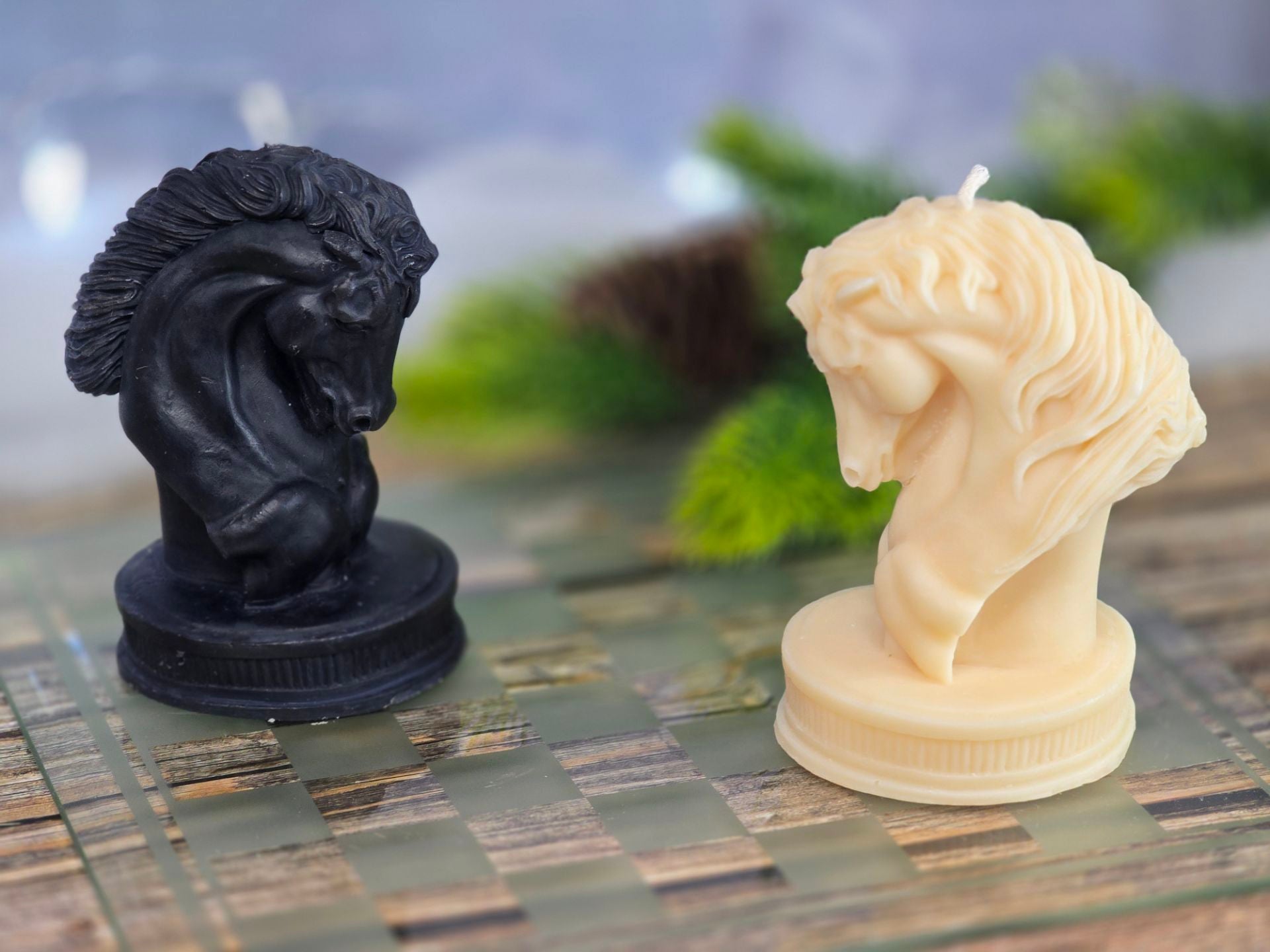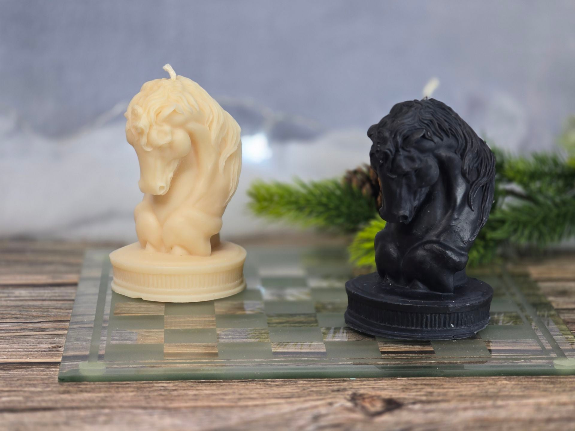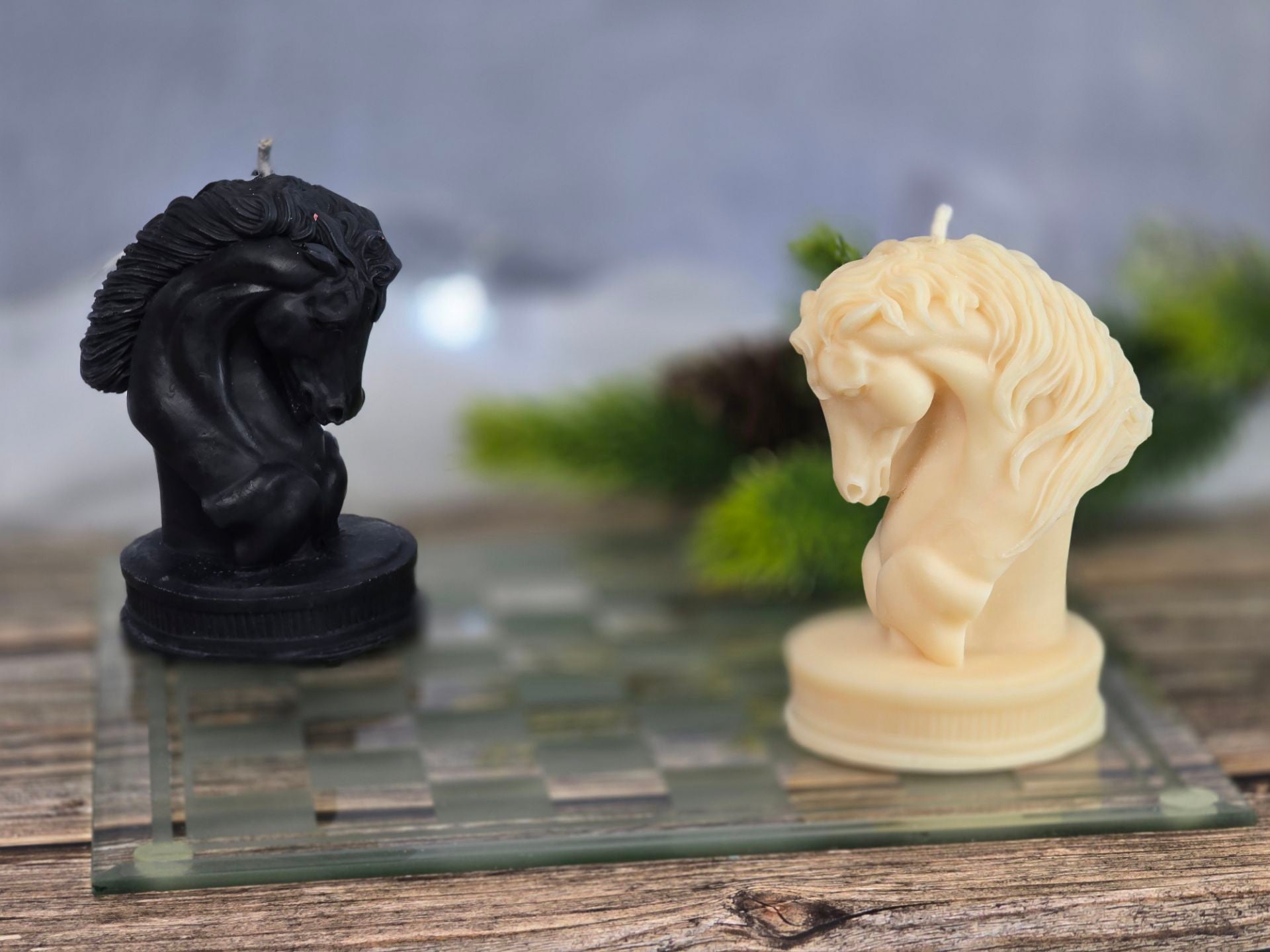 Inspired by the iconic chess piece, this sculpted horse candle captures the power and mystery of the knight’s move. Available in classic ivory or bold black, it brings a touch of strategy and sophistication to any space.