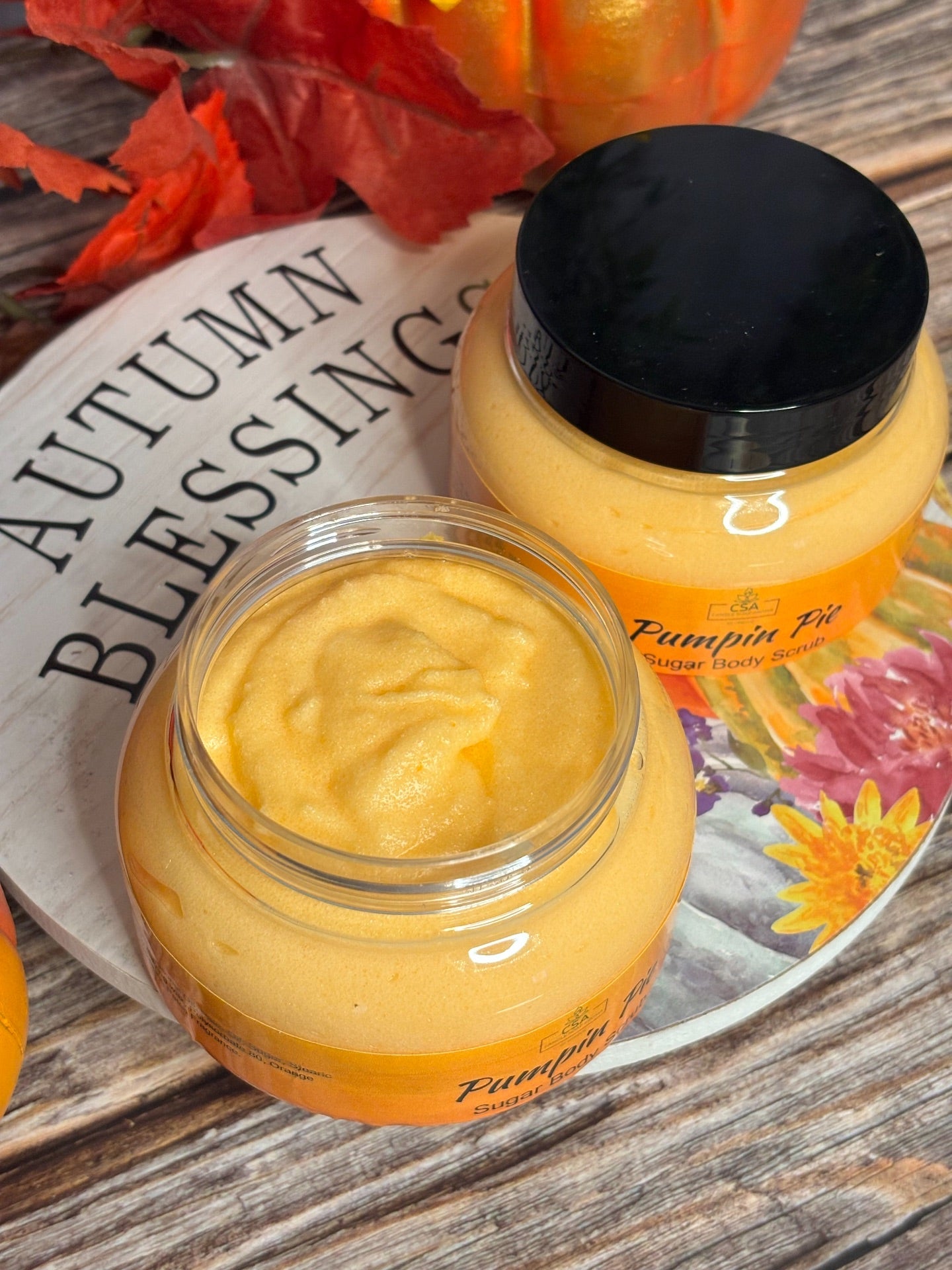 🎃 Meet your skin’s new fall favorite — our Pumpkin Pie Sugar Body Scrub! 🎃✨